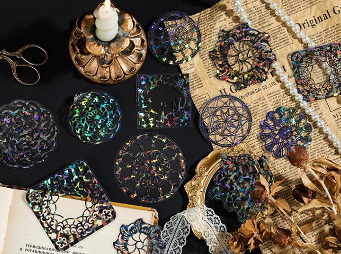 オーロラの幾何学模様がとても美しいシールです。どちらかといえばクールな色合いで冬の寒い日のコラージュにぴったりだと思います。レース柄の代わりにこれを使ってもかわいいですね♪