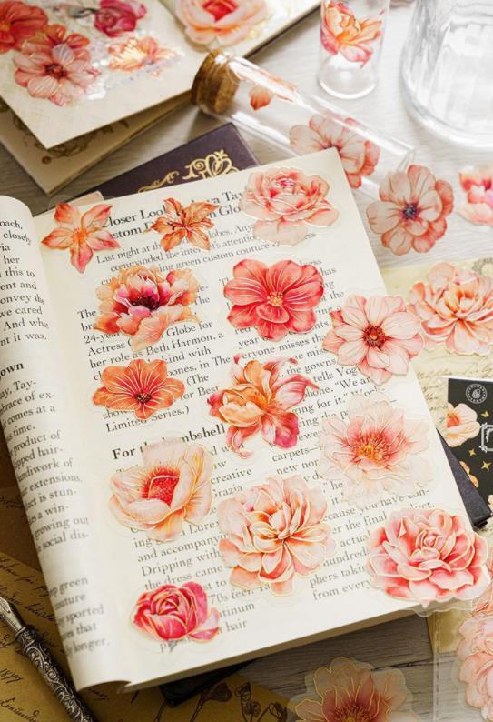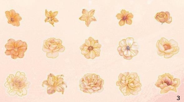 オーロラの箔押しが美しいお花のシールです。箔押しがキラキラしていて存在感があります。コラージュにも封緘シールにも使える万能なシールです♪