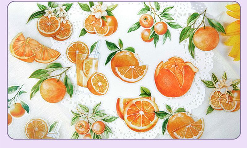 キラキラ箔押しが美しいシールです。透明感があり、フルーツのみずみずしさも存分に表現されています。手帳デコに、コラージュにいかがでしょうか♪
