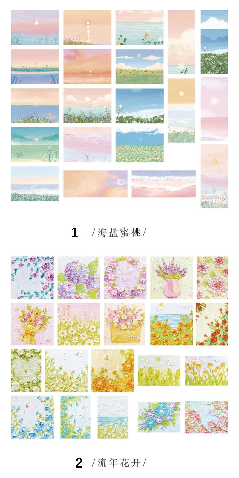 優しい色合いの油絵風のシールです。