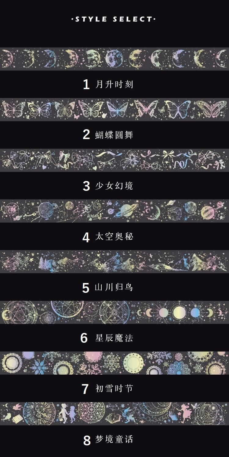 キラキラとオーロラの輝きが美しいPET素材のロールシールです。
