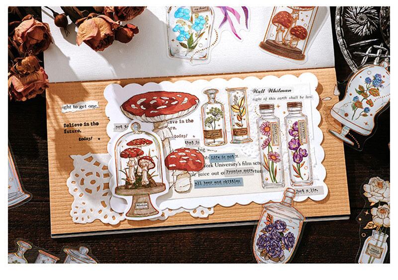 箔押しがキラキラと美しいシールです。海洋生物やお花、日用雑貨など、さまざまなシーンのシールがあり、日記にも貼りやすいですね♪