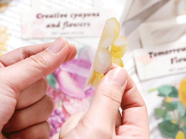 鮮やかな色合いのお花のシールです。サイズが大きめなので、コラージュに使ったり、おすそ分けに入れたりしても存在感を放ちます♪